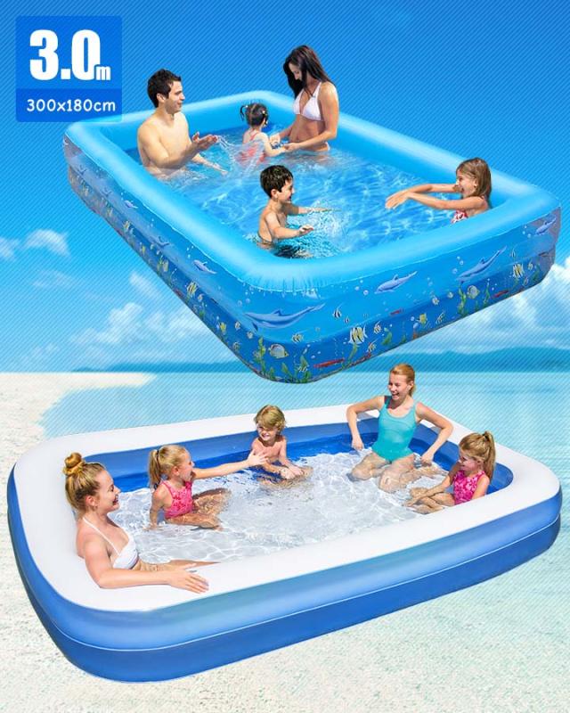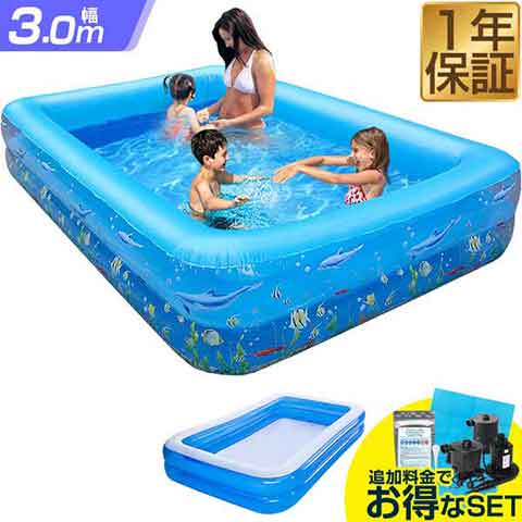 プール 大型 3m ビニールプール ファミリープール 3.0m 幅300cm×奥行×180cm 高さ45cm 長方形 四角 子供用 水遊び キッズプール レジャープール エアープール 家庭用プール 子ども用プール 除菌剤 消毒 電動ポンプ 空気入れ 1年保証 送料無料