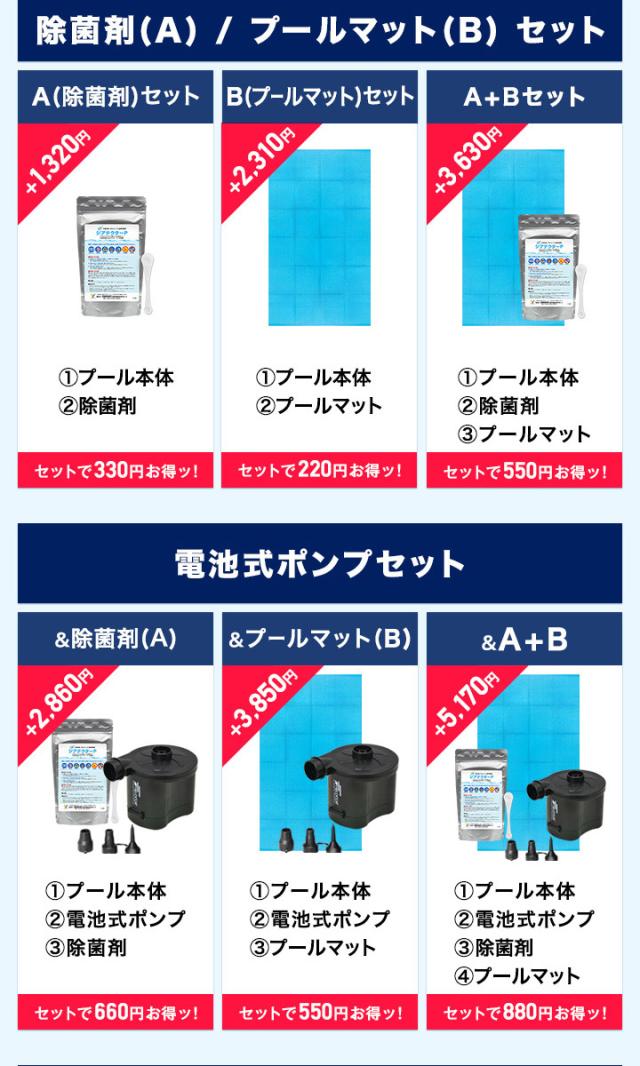 | ※[店舗管理用 URL]a02899_sale03 ※[品番]【プール本体のみ/マリン:a08583】【電池式ポンプ付(+1540円)/マリン:a04998】【AC電源ポンプ付(+1980円)/マリン:a04997】【充電式ポンプ付(+2860円)/マリン:a17341】【A/除菌剤付(+1320円)/マリン:a02954】【B/プールマット付(+2310円)/マリン:a02984】【A/除菌剤&B/マット付(+3630円)/マリン:a02985】【電池式ポンプ&Aセット(+2860円)/マリン:a02961】【電池式ポンプ&Bセット(+3850円)/マリン:a02986】【電池式ポンプ&A/Bセット(+5170円)/マリン:a02989】【AC電源ポンプ&Aセット(+3300円)/マリン:a02962】【AC電源ポンプ&Bセット(+4290円)/マリン:a02987】【AC電源ポンプ&A/Bセット(+5610円)/マリン:a02990】【充電式ポンプ&Aセット(+4180円)/マリン:a17314】【充電式ポンプ&Bセット(+5170円)/マリン:a02988】【充電式ポンプ&A/Bセット(+6490円)/マリン:a02991】【プール本体のみ/ブルー:a16495】【電池式ポンプ付(+1540円)/ブルー:a17570】【AC電源ポンプ付(+1980円)/ブルー:a17569】【充電式ポンプ付(+2860円)/ブルー:a17576】【A/除菌剤付(+1320円)/ブルー:a17563】【B/プールマット付(+2310円)/ブルー:a03023】【A/除菌剤&B/マット付(+3630円)/ブルー:a03024】【電池式ポンプ&Aセット(+2860円)/ブルー:a17564】【電池式ポンプ&Bセット(+3850円)/ブルー:a03025】【電池式ポンプ&A/Bセット(+5170円)/ブルー:a03028】【AC電源ポンプ&Aセット(+3300円)/ブルー:a17565】【AC電源ポンプ&Bセット(+4290円)/ブルー:a03026】【AC電源ポンプ&A/Bセット(+5610円)/ブルー:a03029】【充電式ポンプ&Aセット(+4180円)/ブルー:a17574】【充電式ポンプ&Bセット(+5170円)/ブルー:a03027】【充電式ポンプ&A/Bセット(+6490円)/ブルー:a03030】 |