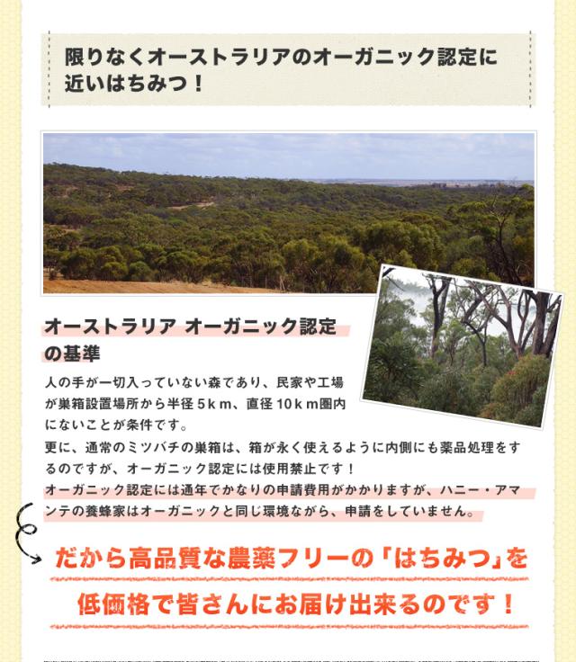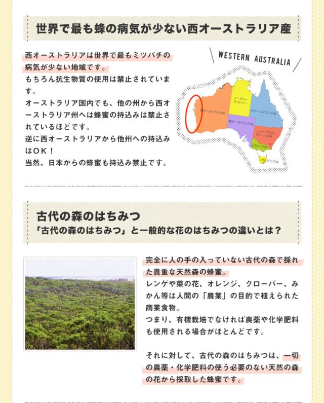 ※100%オーストラリア産。巣箱から半径5km以上何もない、古代の森で採集されたはちみつ。熱に弱い『酵素・ビタミン・ミネラル』を残す【低温充てん製法】で丁寧に製造!