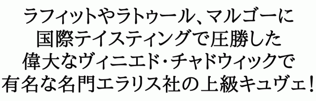 ラフィットやラトゥール、マルゴーに国際テイスティングで圧勝した偉大なヴィニエド・チャドウィックで有名なチリの名門エラリス社。マックスレゼルバシリーズの大人気大人気ソーヴィニヨン・ブラン!主にアコンカグア・ヴァレー、マックス・ヴィンヤードのぶどうを使用。手摘みで収穫したブドウはワイナリーに運ばれ80%をプレス。プレスされたジュースはステンレスタンクの発酵槽に入れられ、14度から16度の温度で15日から20日間発酵。その後軽くフィルターを掛けてボトリング。緑ががかったシルバーイエロー。ノーズはフレッシュなハーブとかすかなレモングラスやミントが香り、トマトの葉の様なニュアンスも感じる。口に含むと柑橘系とハーブの香りが瑞々しさと快活さを生み出している。ミディアムボディで程よい後味の長さを持った直線的なワインで、爽やかな酸味が印象的なソーヴィニヨン・ブラン!正規輸入代理店品が限定入荷!
