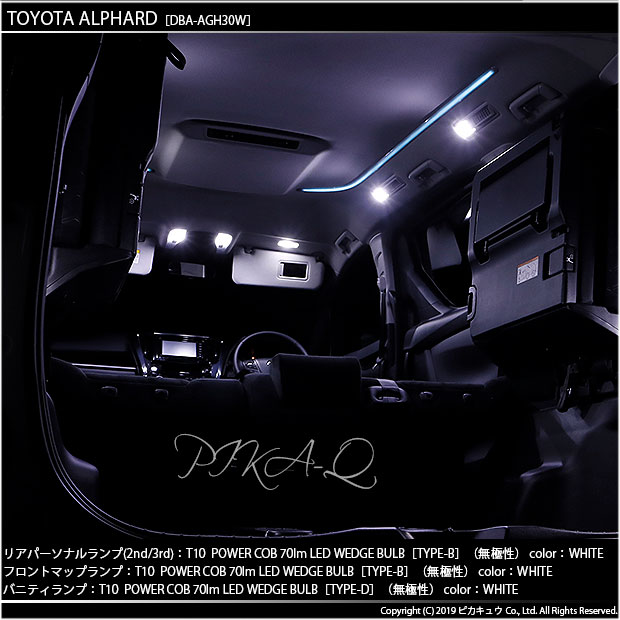 トヨタ アルファード (30系 後期) 対応 LED リアパーソナルランプ T10 COB タイプB T字型 70lm ホワイト 4個 4-E-2