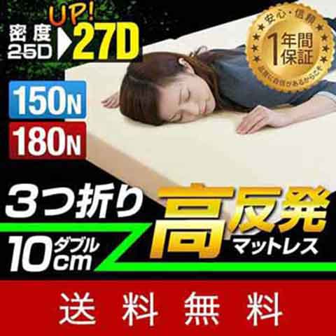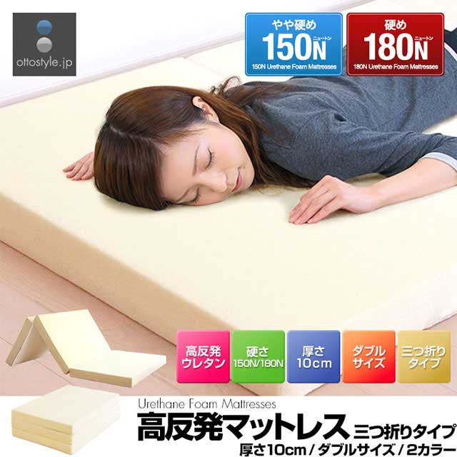 マットレス 高反発マットレス 10cm ダブル 三つ折り 3つ折り 150N 180N 高反発 マット ベッド 敷き布団 三つ折 折りたたみ 低反発マットレス と使い替えても高反発マット 寝具 1年保証 [送料無料]
