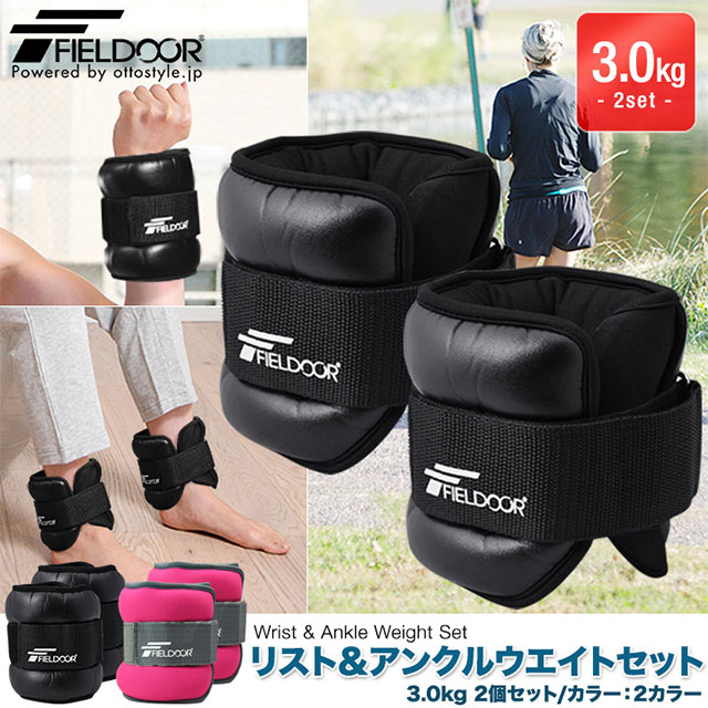 | 普段の生活からトレーニング時の筋力アップのサポートに! リスト&アンクルウエイト 3.0kg【ブラック/ピンク】2個セット |