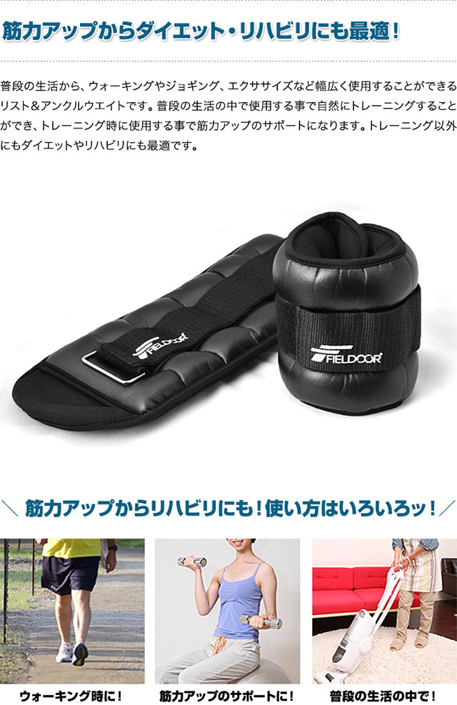 普段の生活から、ウォーキングやジョギング、エクササイズなど幅広く使用することができるリスト&アンクルウエイトです。普段の生活の中で使用する事で自然にトレーニングすることができ、トレーニング時に使用する事で筋力アップのサポートになります。トレーニング以外にもダイエットやリハビリにも最適です。