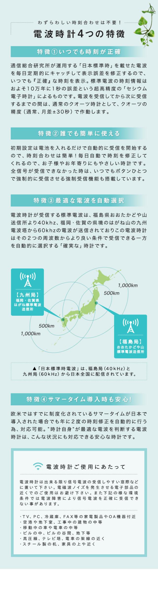 | 受信機能: 自動時刻補正(午前3時・午前4時・午前5時/日) |
