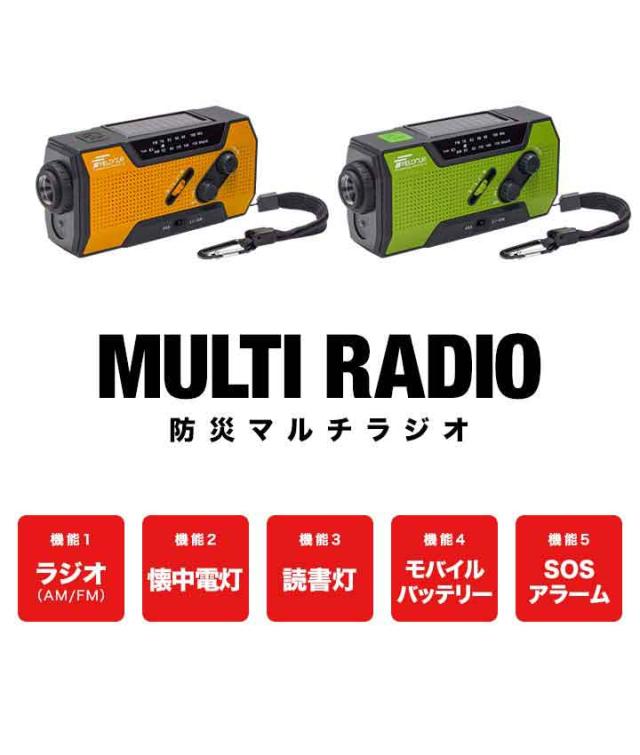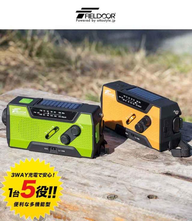 防災ラジオ 多機能 ラジオ 1台5役 防災グッズ 懐中電灯 生活防水 ラジオ 読書灯 モバイルバッテリー SOSアラーム3WAY充電 USB充電 手回し充電 ソーラー充電 乾電池式 災害対策 AM/FM ラジオ アウトドア キャンプ BBQ フィールドア 1年保証 [送料無料]