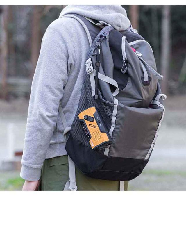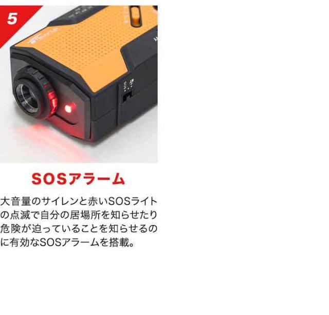 SOSアラームの5つの機能を搭載した多機能ラジオ。キャンプのお供や防災グッズとして、一家に一台備えておくと安心のアイテムです。