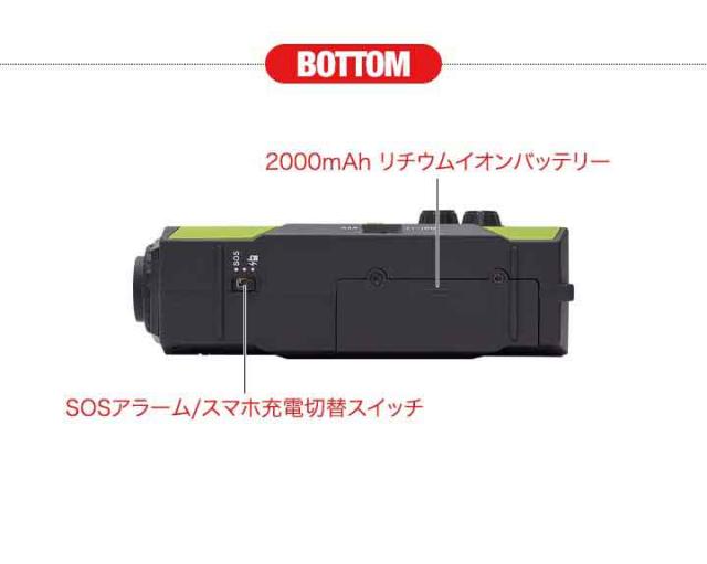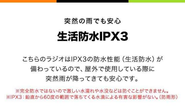 | 特記事項: ※分解したり、内蔵バッテリーを取り外したりしないでください。 ※高温多湿の場所や、火気の近くでは使用しないでください。 ※長期間使用しない場合は乾電池を取り外して保管してください。 ※ラジオ視聴時のノイズが気になる場合はスマホ充電スイッチをオフにしてください。 |