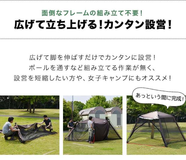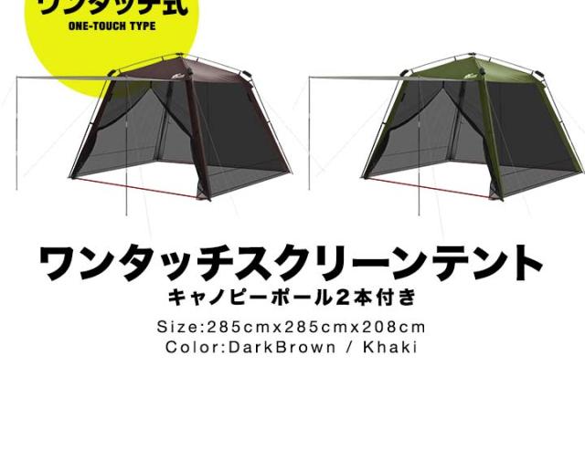 スクリーンテント スクリーンタープ テント ワンタッチ ドームテント タープテント タープ スクリーン キャノピー 2本付き 蚊帳 約 幅285cm x 行285cm x 高さ208cm フィールドア 1年保証 [送料無料]