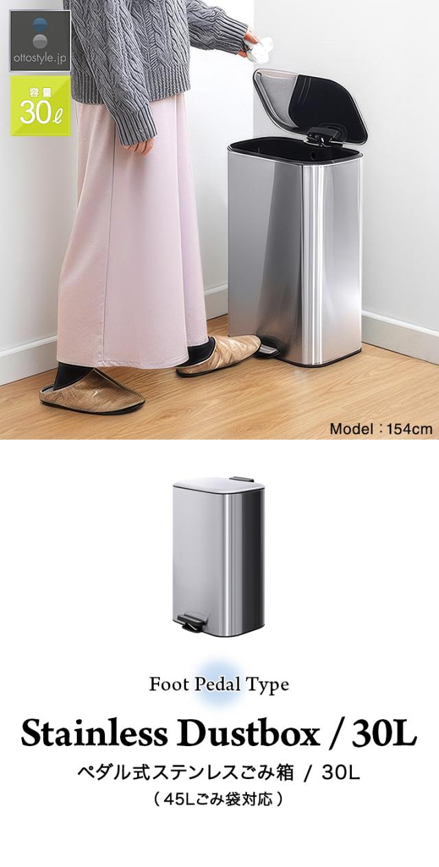 ゴミ箱 30L ペダル ふた付き ペダル開閉式 縦型 ステンレス/スチール ゆっくり静かにフタが閉まる ゴミ袋が見えない 30リットル ダストボックス ペール 蓋つき ごみ箱 臭い漏れ防止 リビング キッチン ペダル式 足踏み おしゃれ 1年保証 送料無料