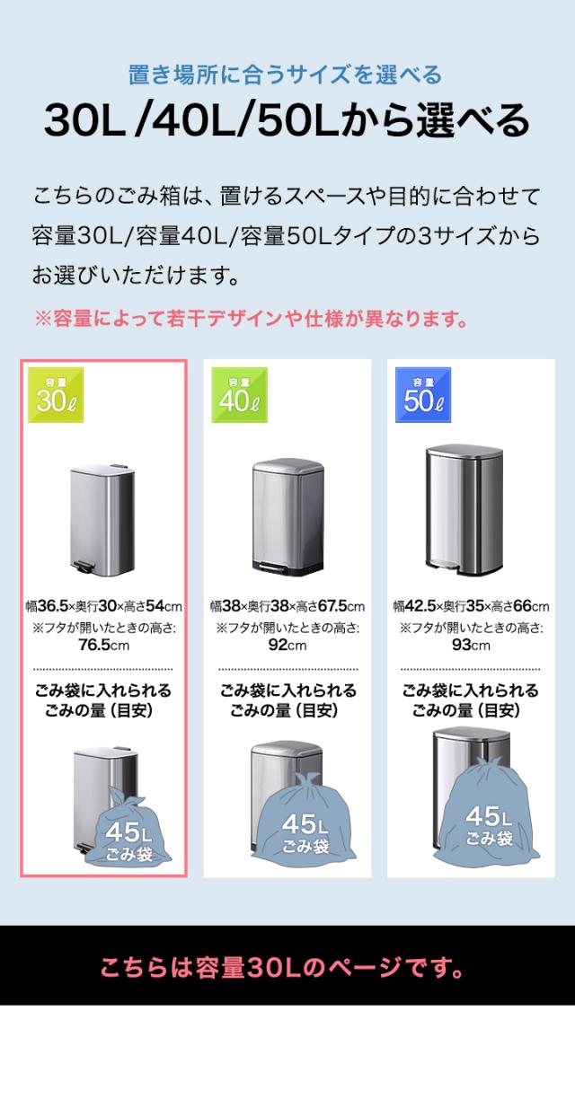 - 家のゴミ箱置き場にピッタリサイズ。足で開閉できることがこんなに便利だとは思いませんでした。