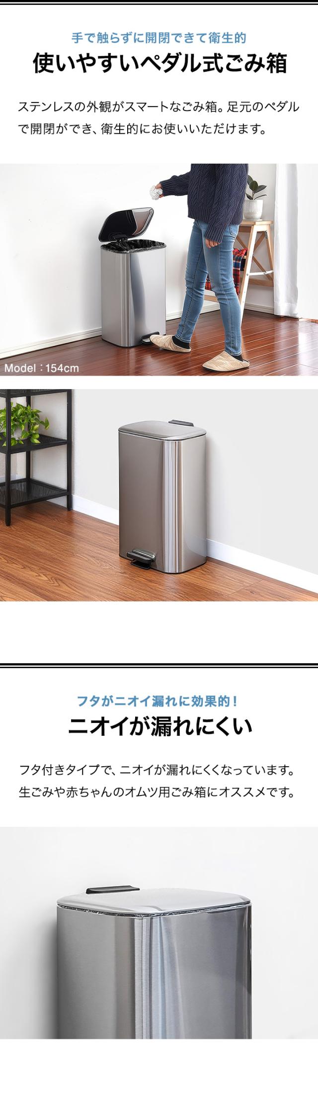 ゴミ箱 ごみ箱 塵箱 ダストボックス ペール くず箱 屑箱 屑入れ くず入れ ごみ箱 箱 芥箱 おしゃれ かわいい カフェスタイル インテリア リビング キッチン 寝室 ナチュラル 北欧 収納 縦型 分別 大容量 スクエア 四角 高さ55cm 45L 45リットル ゴミ袋対応 ペダル ペダル開閉 ペダル式 ペダルゴミ箱 ペダルペール 足踏み 足で開ける 足 におい 臭わない オムツ ふた付き フタ付き 蓋付き 袋 見えない 袋が見えない 袋見えない スリム ステンレス製 ステンレスペール シルバー 銀