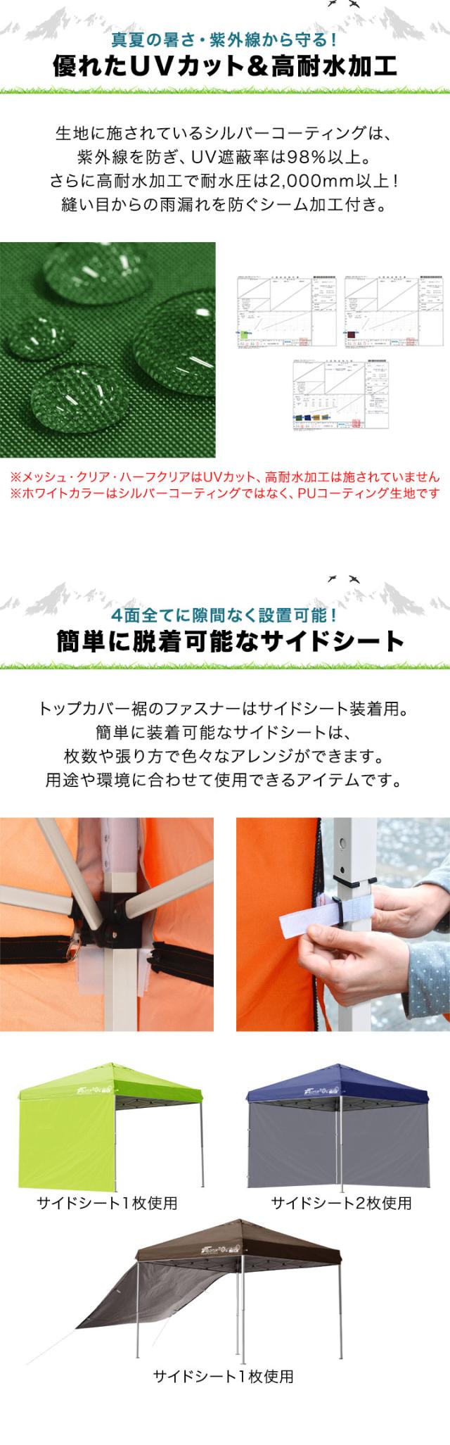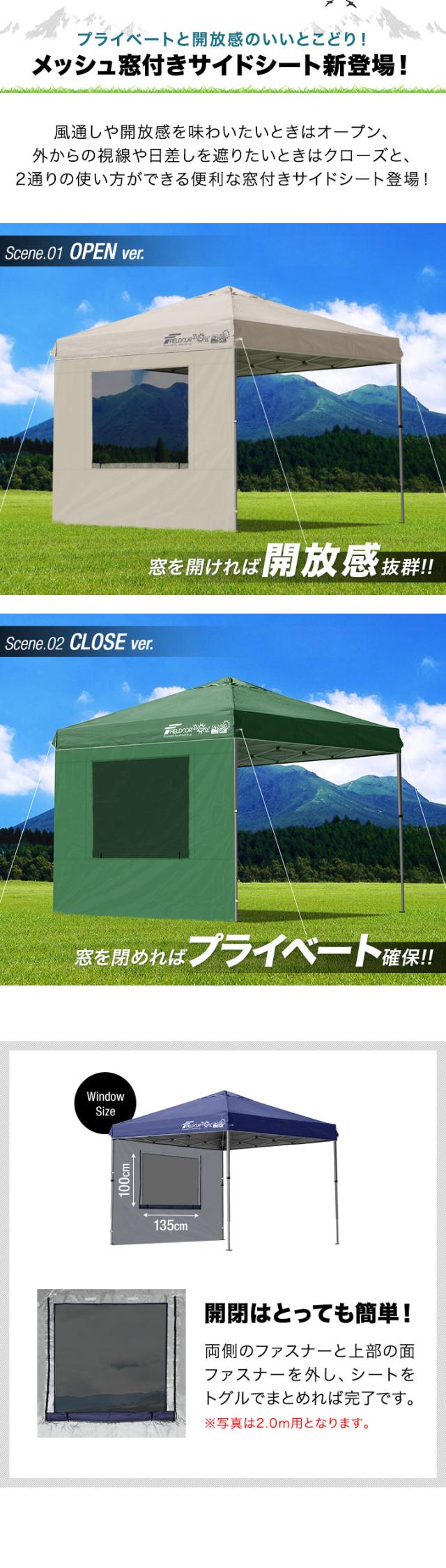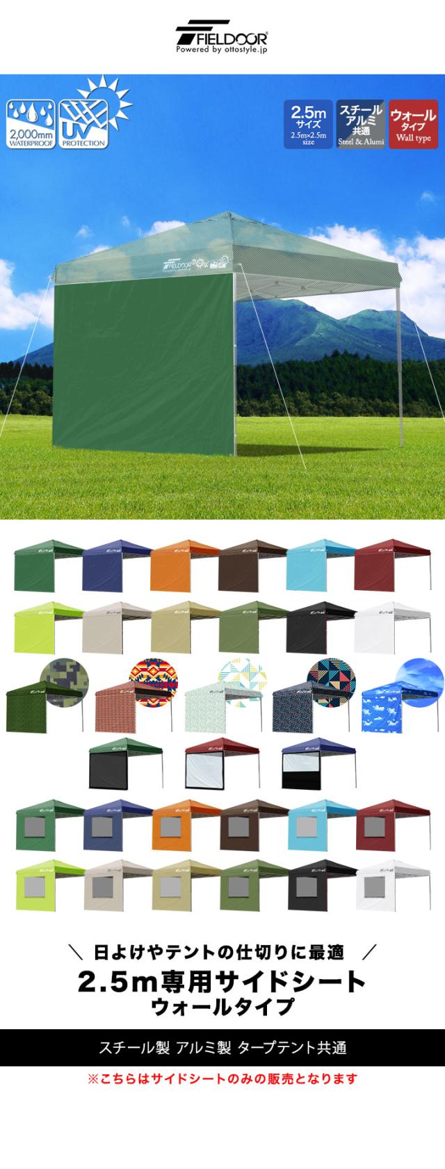 FIELDOOR ワンタッチタープテント用 横幕 サイドシート 1枚単品 2.5m 250cm ウォールスクリーン 追加オプション ワンタッチタープ専用 選べる ウォール/メッシュ/クリア/ハーフクリア/窓付き ※タープテント本体別売 1年保証 送料無料