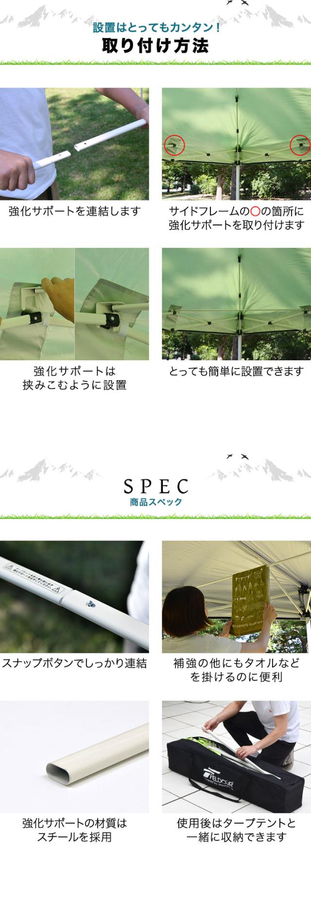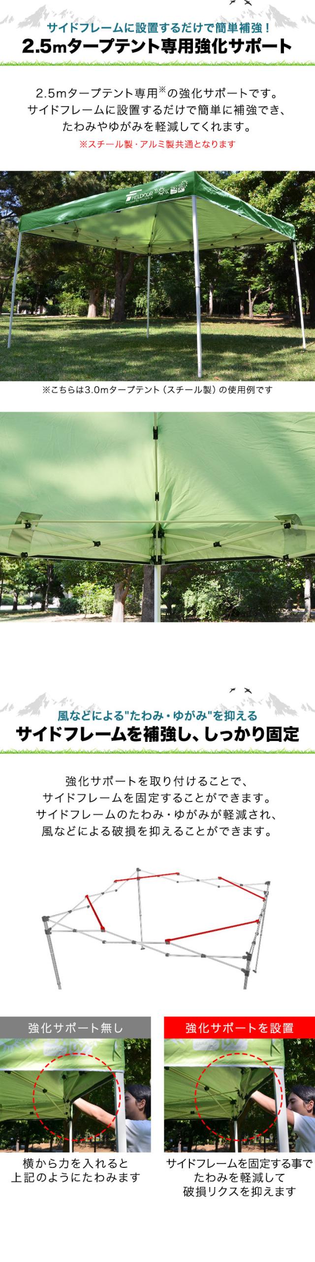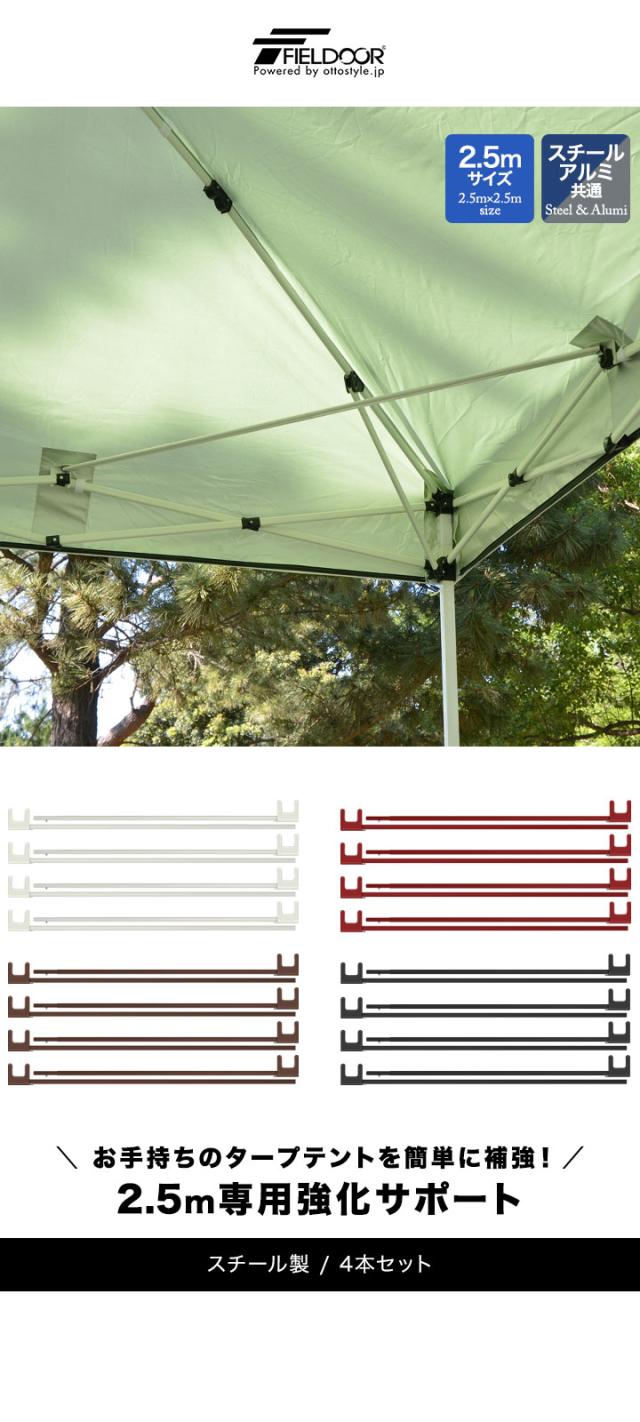 タープテント 2.5m 専用 サイドフレーム 強化サポート スチール 4本セット 2.5m用 タープ テント 頑丈 丈夫 高強度 FIELDOOR ワンタッチタープ専用オプション 2.5m専用強化サポート ※タープテント本体別売 1年保証 送料無料