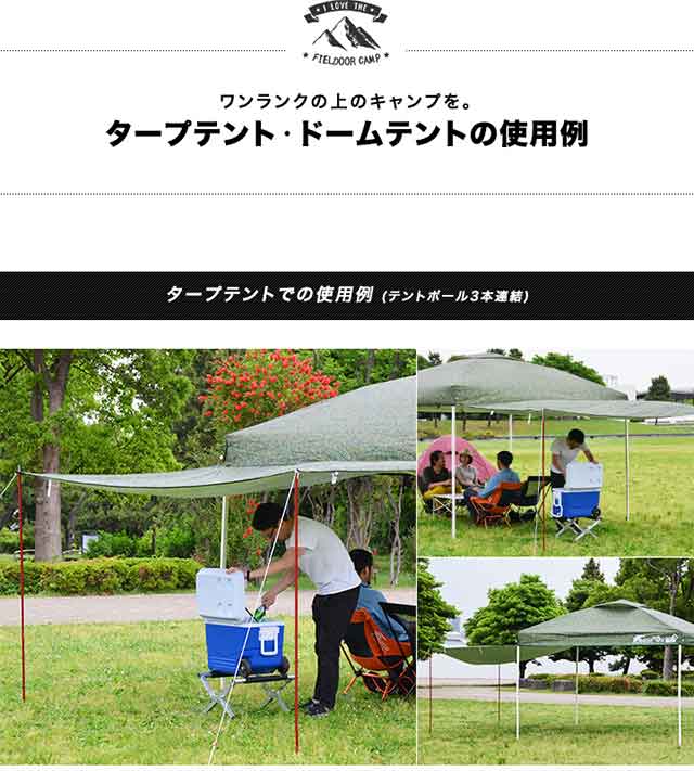 | タープテントのサブポールやテント入り口のキャノピー用に最適なテントポール FIELDOOR テントポール[4本連結/219cm]【3カラー】 |