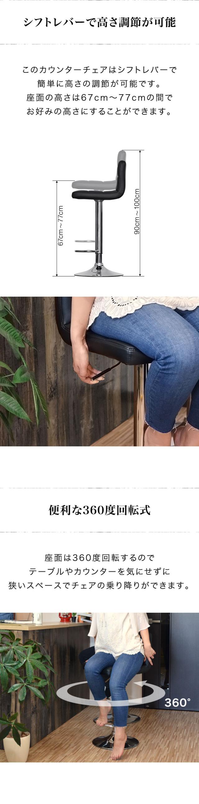 カウンターチェア 2脚セット 昇降 椅子 昇降式 いす 背もたれ付き 高さ調整 カウンターチェアー バーチェア キッチンチェア カウンターキッチン ダイニングチェア ハイチェア イス チェア モダン カフェ 喫茶店 ガス圧 70cm 1年保証 [送料無料]