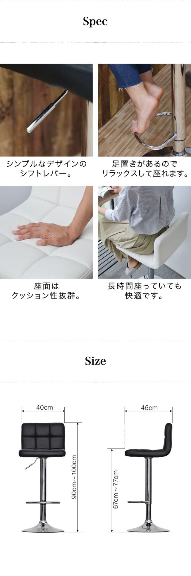 | サイズ: 本体 : (約)40cm×45cm×90〜100cm 座面の高さ : (約)67cm〜77cm |