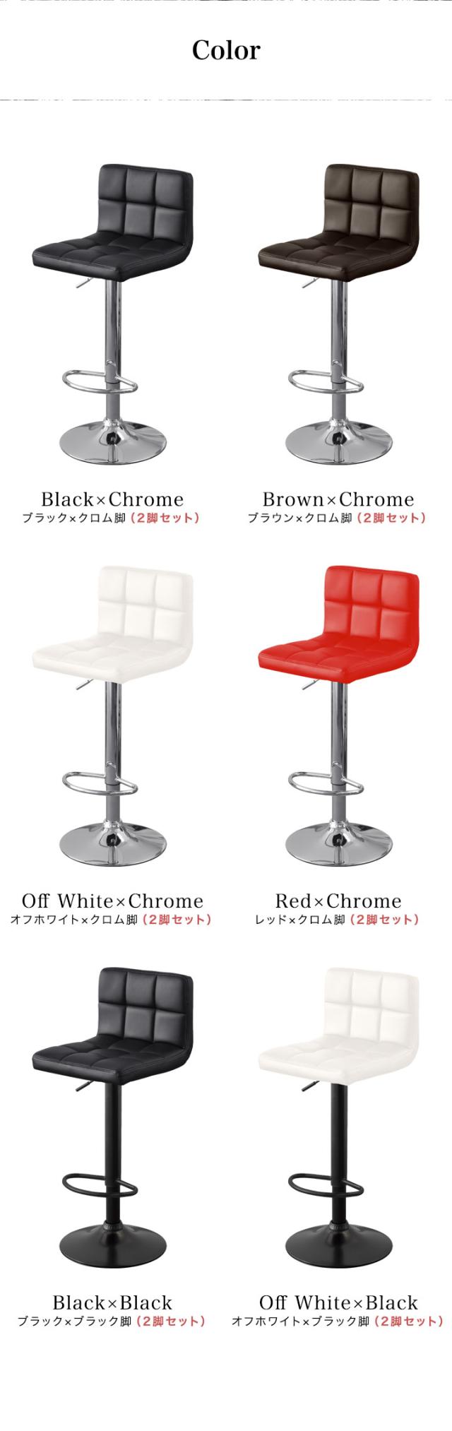 | カラー: ・ブラック×クロム脚 ×2 ・ブラウン×クロム脚 ×2 ・オフホワイト×クロム脚 ×2 ・レッド×クロム脚 ×2 ・ブラック×ブラック脚 ×2 ・オフホワイト×ブラック脚 ×2 |