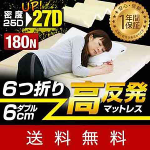 マットレス 高反発マットレス 6cm ダブル 六つ折り 6つ折り 高反発 マット ベッド 敷き布団 六つ折 折りたたみ 低反発マットレス と使い替えても厚さ6cm 180N 三つ折り より コンパクト 高反発マット 寝具 1年保証 [送料無料]