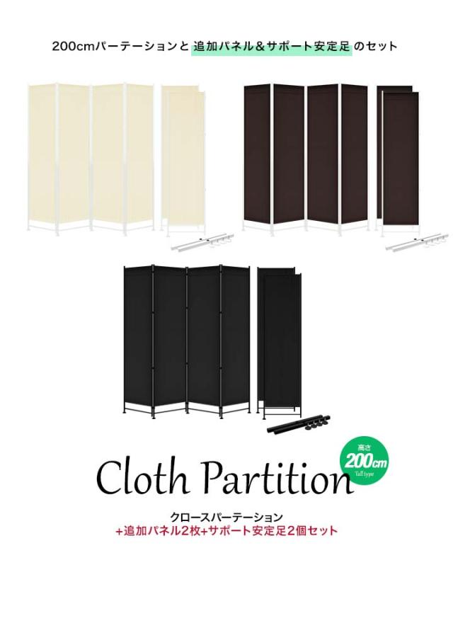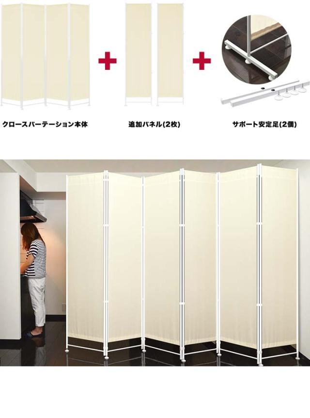 クロスパーテーション+追加パネル2枚+サポート安定足2個セット 6連 高さ200cm 布タイプ 北欧 目隠し 自立 間仕切り 衝立 パーテーション おしゃれ スクリーン 衝立 ついたて パーティション パーティーション 6枚 送料無料