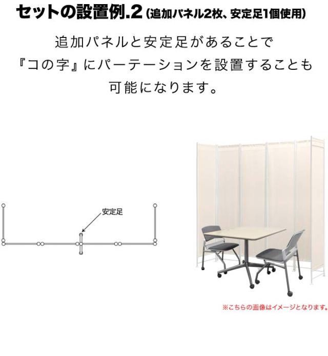 | セット内容: ・クロースパーテーション本体×1 ・追加パネル×2 ・サポート安定足×2 |