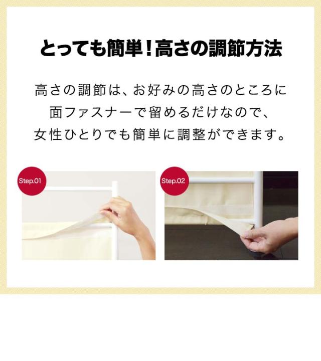 | サイズ: クロースパーテーション本体:(約)幅202cm×高さ200cm(4枚全開にした場合) ※1枚辺りの幅50cm 追加パネル:(約)幅50cm×高さ200cm サポート安定足:(約)4.7cm×45cm×4.5cm |