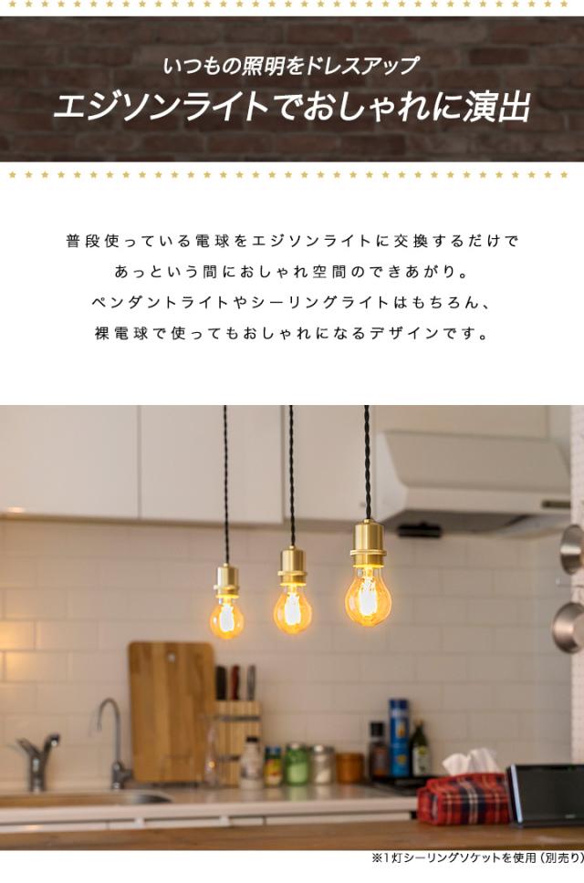 普段使っている電球をエジソンライトに交換するだけであっという間におしゃれ空間のできあがり。ペンダントライトやシーリングライトはもちろん、裸電球で使ってもおしゃれになるデザインです。