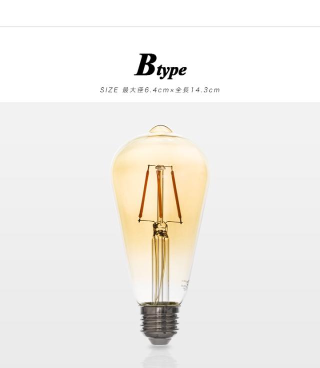 - ワイヤータイプのペンダントライトには普通の電球よりエジソン電球の方がイイ感じだと思い購入しました。思っていたより明るいですが購入して正解でした。形も迷いましたがBにして良かったです。