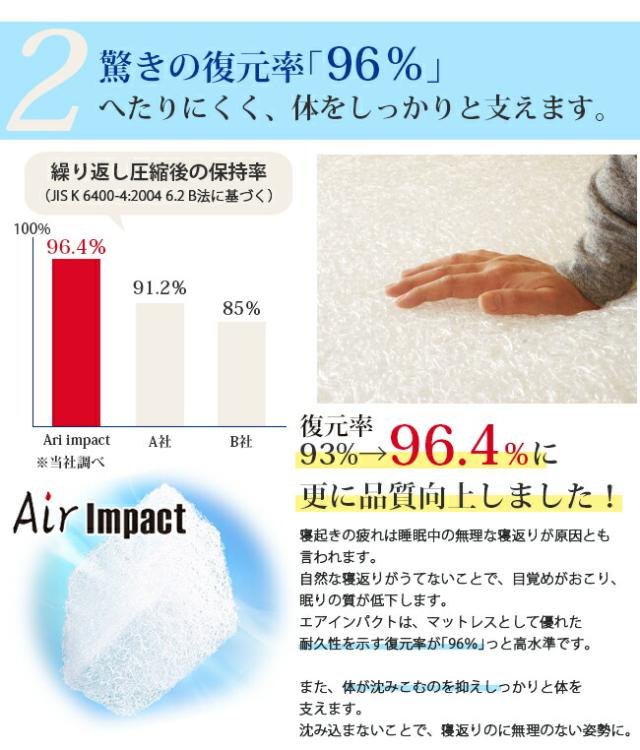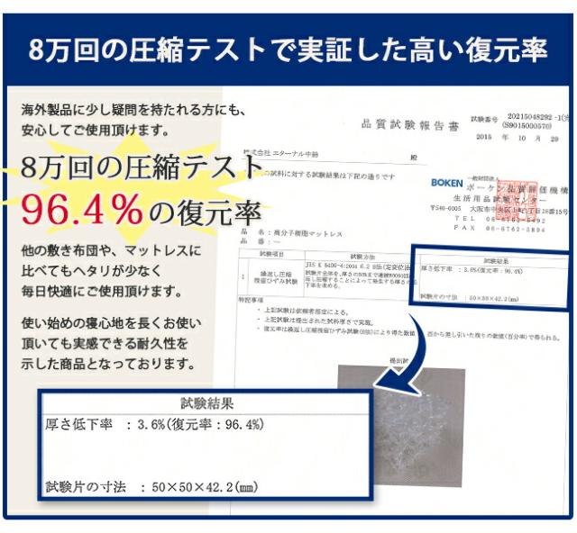 耐久性にも優れ8万回の圧縮テストをしても93%の復元率を維持します。