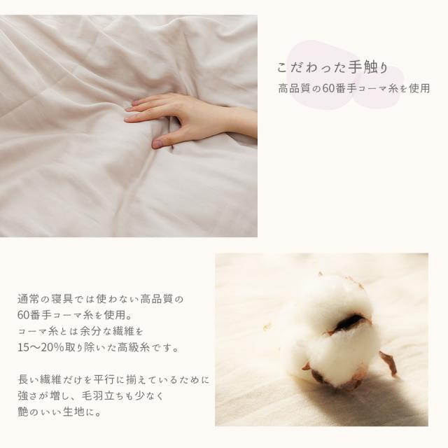 高品質の60番手コーマ糸を使用。毛羽立ちも少なく艶のいい糸で何とも言えない肌触りの良さを実現しました。