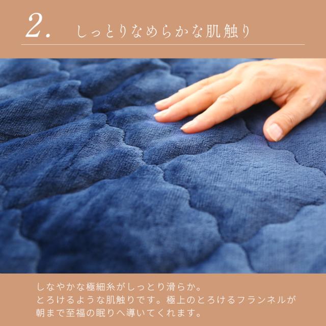 フランネル生地は、柔らかくて暖かく軽いのが特徴です。保湿・保温性にも優れており熱を逃がさず一晩中暖かいが続きます。当店のフランネルは、肌あたりが優しくしっとり滑らかな肌触りのシルキータッチ。滑らかで暖かく冬のおやすみも至福の眠りに導いてくれます。シリーズ商品の掛けカバー・敷きカバーと合わせてお使いになるとより一層暖かく、毎晩眠りにつくのが楽しみになるような、そんな極上のフランネル生地を使用しています。