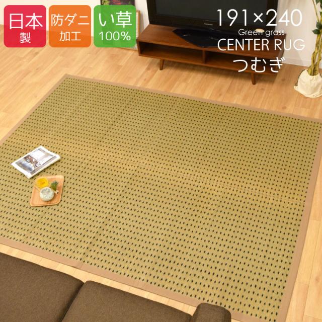 夏ラグ い草 防ダニ加工 在宅勤務 カーペット 3畳 日本製 北欧 シンプル デザイン い草ラグ つむぎ 約191×240cm 国産い草100%使用