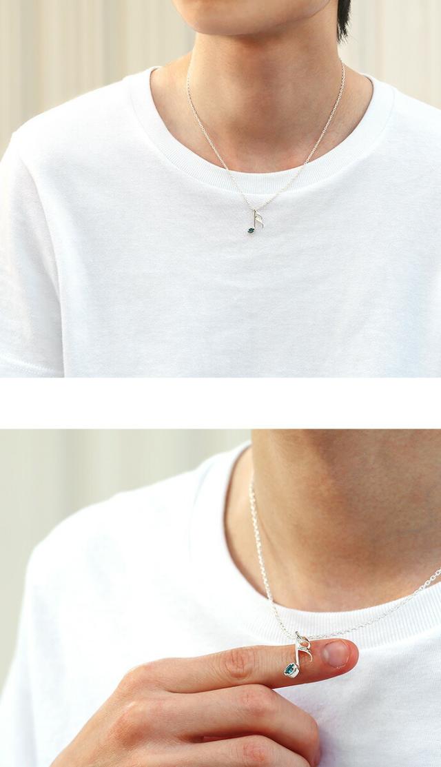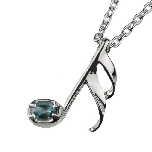 ロンドンブルートパーズが符頭と呼ばれる玉部分に埋め込まれた、16分音符型のペンダント。男性女性問わず着けられるデザインで、音楽好きには嬉しいアクセサリーです。