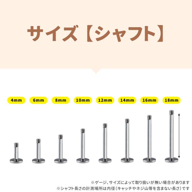 太さ14G,16G,18G,20G シャフト パーツ ラブレットスタッド4mm〜18mmのシャフト パーツです。