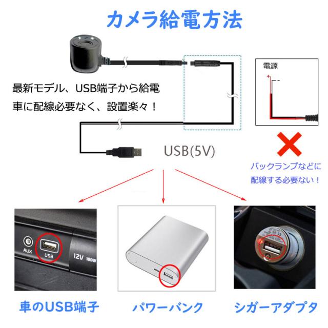 従来のDC12V電源コード式より最新タイプ DC5V USB給電式が登場、USB車載WIFIカメラ