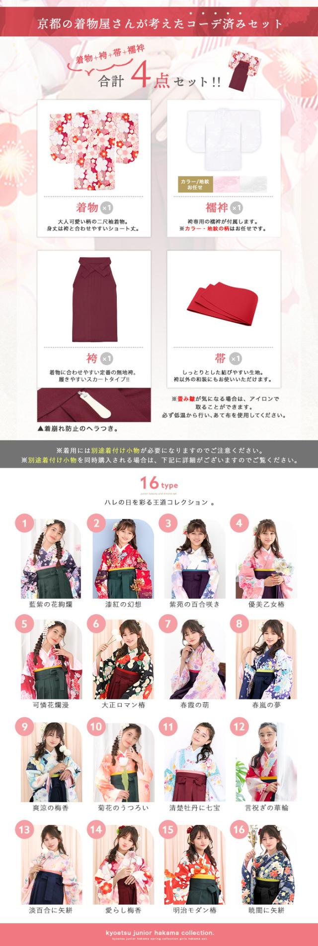 (袴4点セット 華やかAD ジュニア) 袴セット 袴 卒業式 小学生 はかま セット ガールズ 女の子 卒業 着物 帯 襦袢 卒服 二尺袖着物 振袖 和服 和装 ジュニア 謝恩会 セレモニー パーティー 大学生 大学 中学生 高校生 130 140 150 160