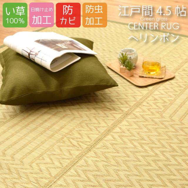 夏ラグ い草 カーペット 在宅勤務 江戸間 4.5畳 ヘリンボン 防虫加工 防カビ加工 日焼け止め加工 夏用ラグ い草100%使用 天然素材