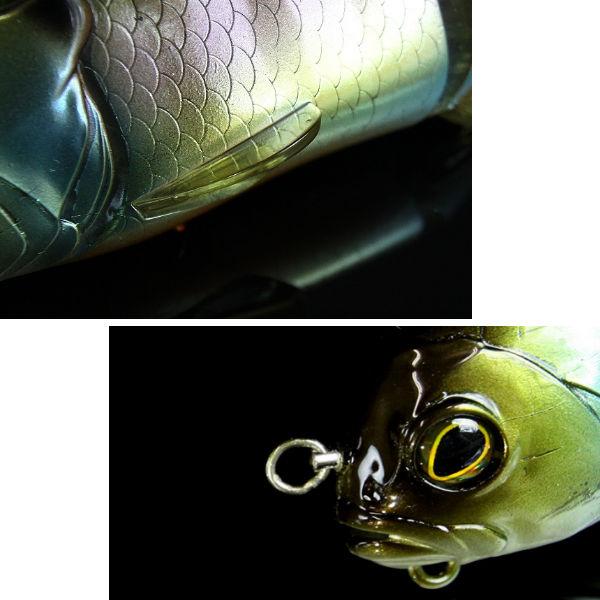 | | カバー攻略に対応!!ブルーギル型ビッグベイト!!! 魚の本能を刺激するブルーギル型ビッグベイト「ガンタレル」。 ブルーギルを捕食している場合はもちろん、そうでない状況であってもバスの攻撃本能を引き出し、 バイトに持ち込みます。 基本的にはゆっくりとしたタダ巻きのみでOKですが、カバー周りなどではヒラを打たせるようにロッドアクションを加えるのも効果的。 そしてチェイスのみでバイトに至らないとき、リトリーブ中にトゥイッチを加えてやれば 180° 以上の大きなターンを繰り返します。 まるで相手を威嚇するかのようなこの "振り向きターン" に驚いたバスは、反射的に口を使ってしまうことでしょう。 ひったくられるような激しいバイトが多いのもガンタレルの特徴です。ド迫力のバイトシーンを是非体験して下さい |