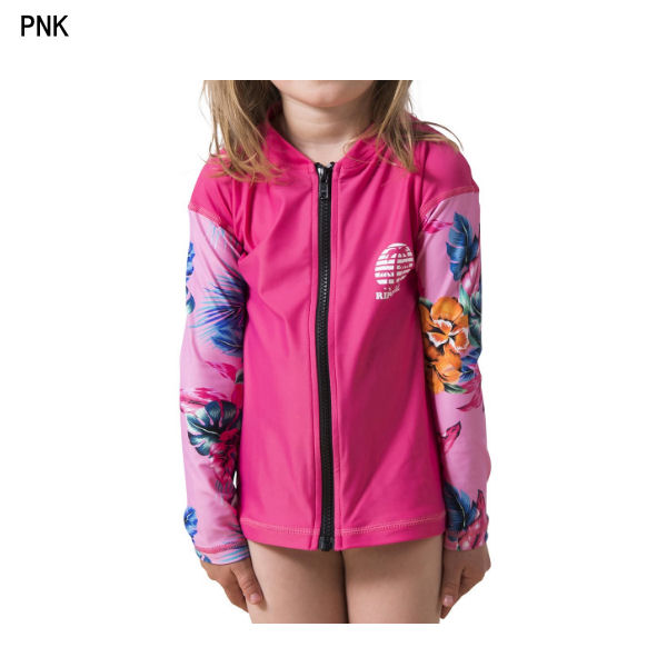 【RIP CURL】リップカール キッズ 子ども 女の子 ラッシュガード ジップアップ ハイネック 長袖 トップス 日焼け プール 海 川