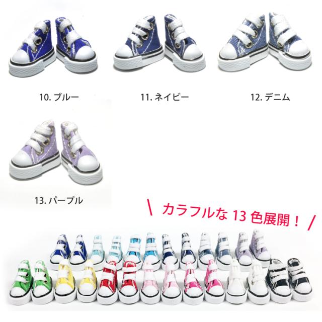 【メール便対応】≪1ペア≫ 靴 キャンバス スニーカー ハイカット ドール ハンドメイド カスタム パーツ 人形 着せ替え 手作り 材料┃