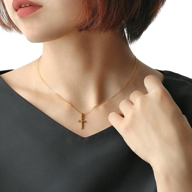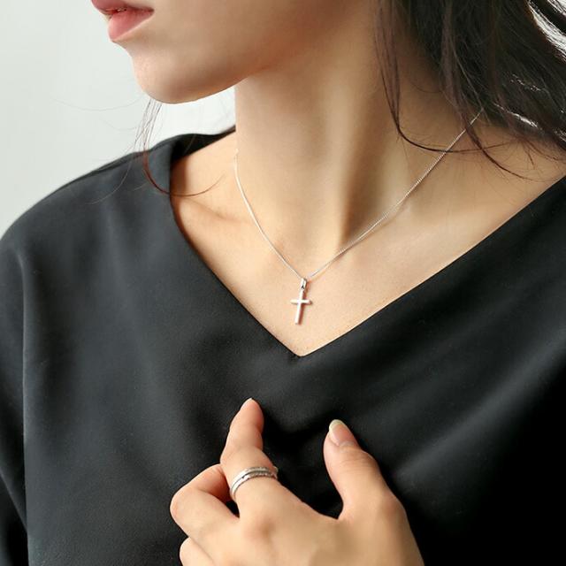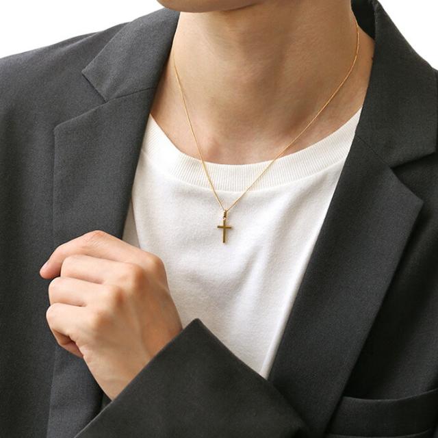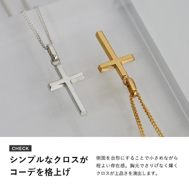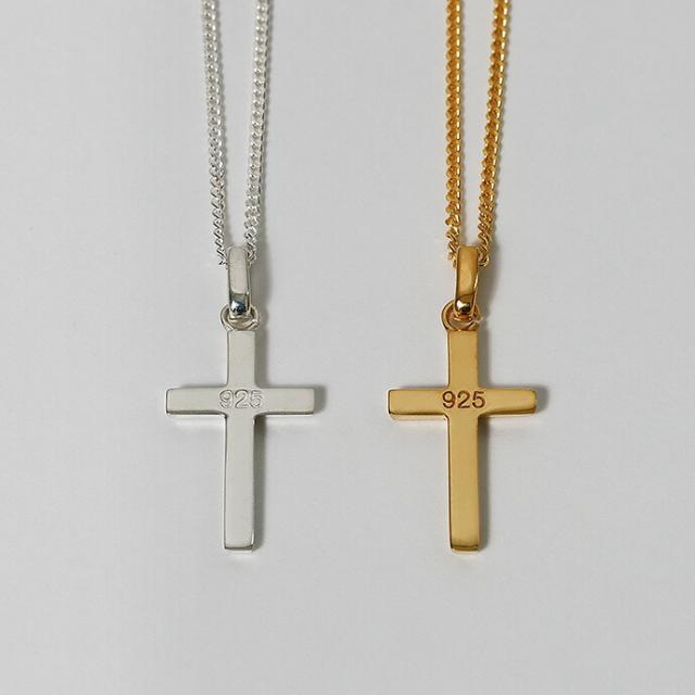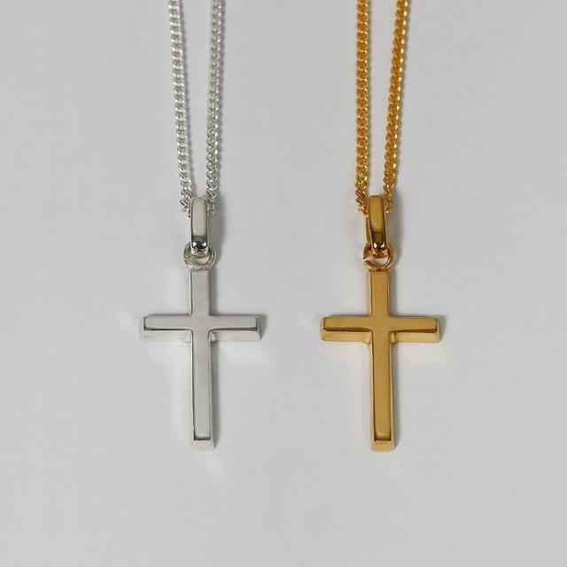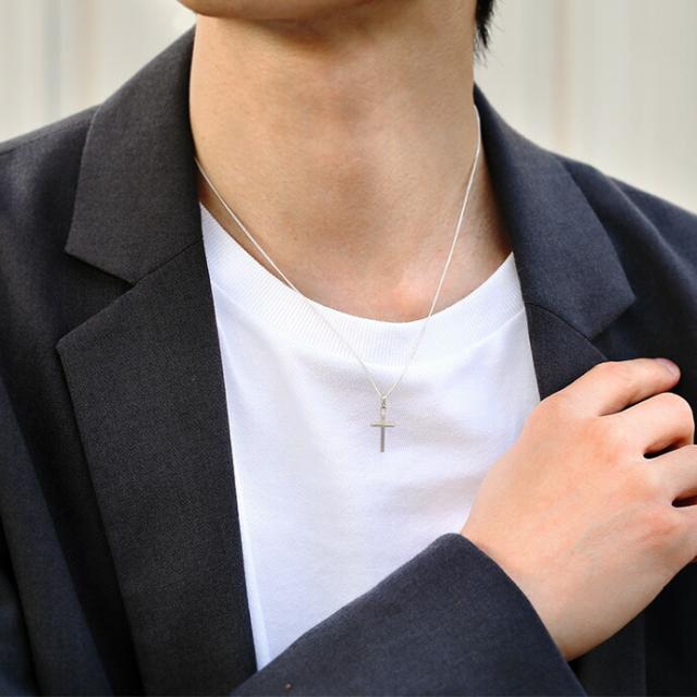 シルバー925のクロスと喜平チェーンがセットになったネックレス。クロスは側面を台形にすることで、小さく細めながらも存在感のあるデザインに。ペンダントとのバランスを重視した極細の喜平チェーンで高級感を出しつつこなれた印象を演出。胸元にさり気なく輝くシルバーアクセサリーは、上品かつクール自分の格を上げてくれる。