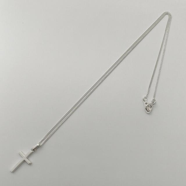 | 素材・サイズ | 【素材】 シルバー925 【サイズ】 縦:約15mm(バチカンを含まない)、横:約9mm、厚み:約1.5mm 重量:約2g(クロス・チェーン合わせて) チェーン:2面カット喜平 幅1mm |