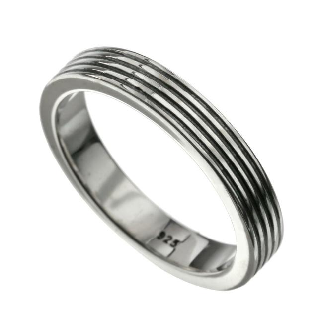 燻し加工による黒いラインが4本通ったデザインのネイティブ系リングです。いつものコーデにさり気なくネイティブ感をプラスできる、シンプルデザインが嬉しいアイテムです。