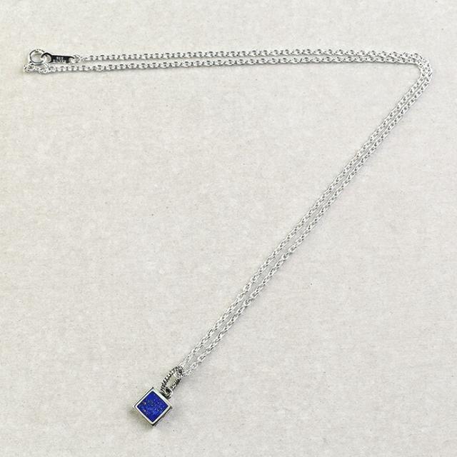 中央にラピスラズリがはめ込まれた、四角形のペンダント。小ぶりサイズながらラピスラズリのカラーと側面の模様が注目度抜群。ファッションのさりげないアクセントになってくれそうなアクセです。