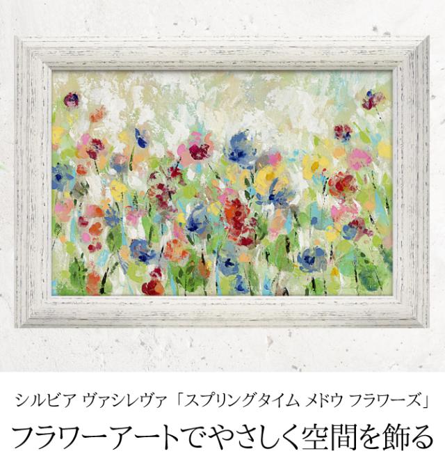 アートパネル 花 モダン 玄関 北欧 インテリア ウォール アート 大型 壁掛け 額入り 額縁 アートフレーム シルビア ヴァシレヴァ スプリングタイム メドウ フラワーズ