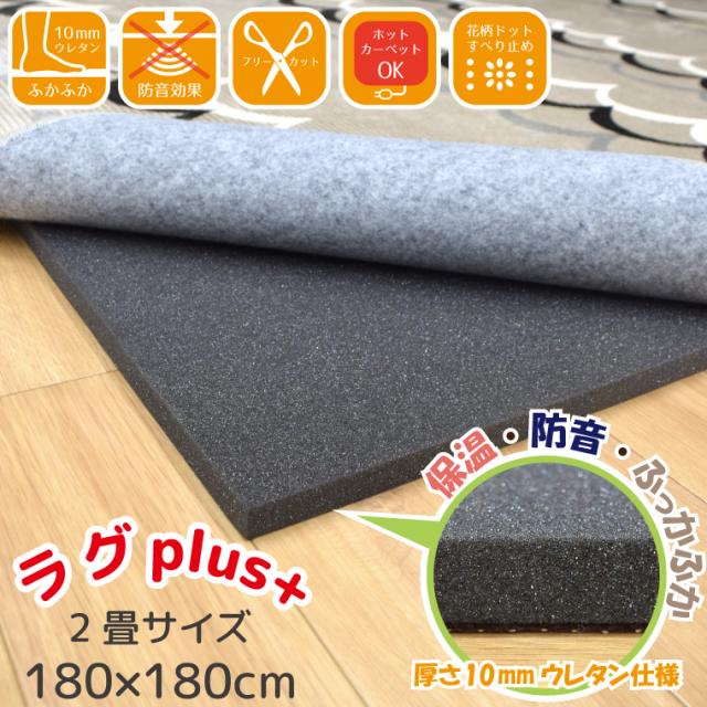 ラグ 下敷き 滑り止め 在宅勤務 2畳 約180×180cm フリーカット ラグplus+ 厚手 洗える ウレタン 防音 子ども ラグプラス rp