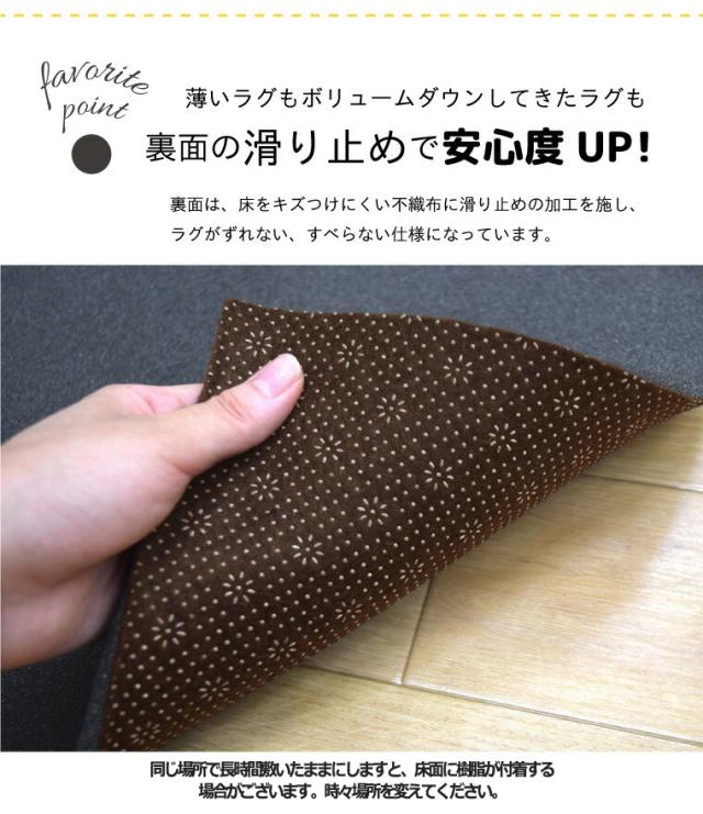 - 洗えるラグを買ったのですがうすくて床に座ると痛かったので試しに購入しました。 滑り止めもしっかりしているのでとてもいい感じ!薄く感じましたが座るとフカフカでこの厚さでもじゅうぶんです。