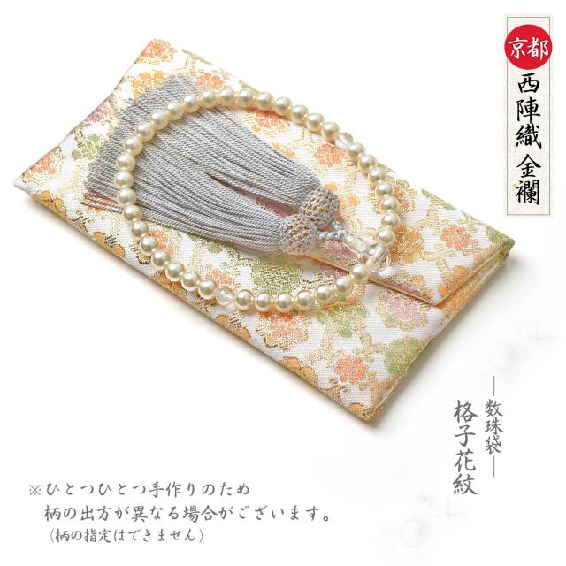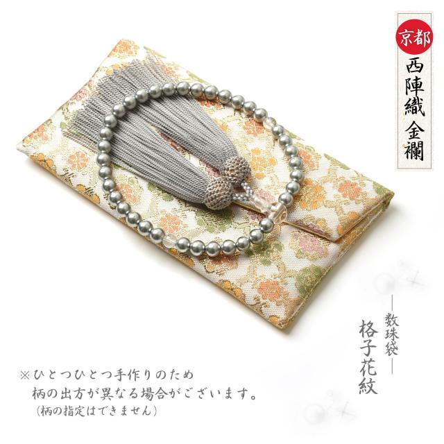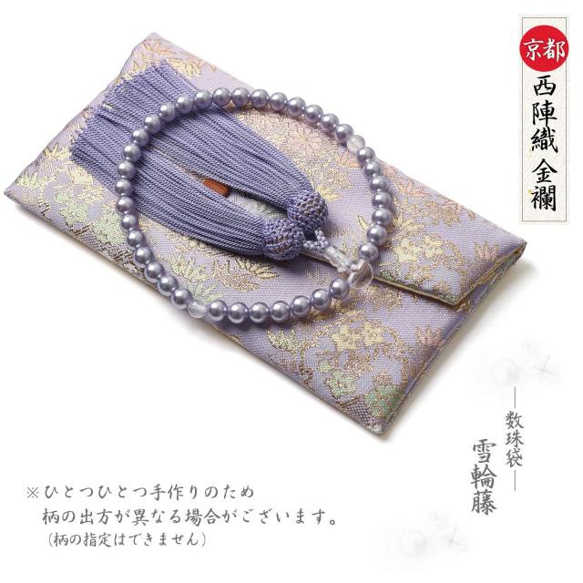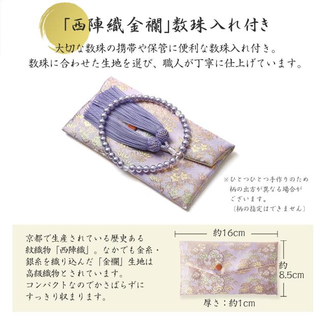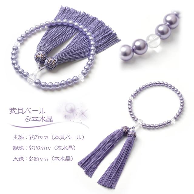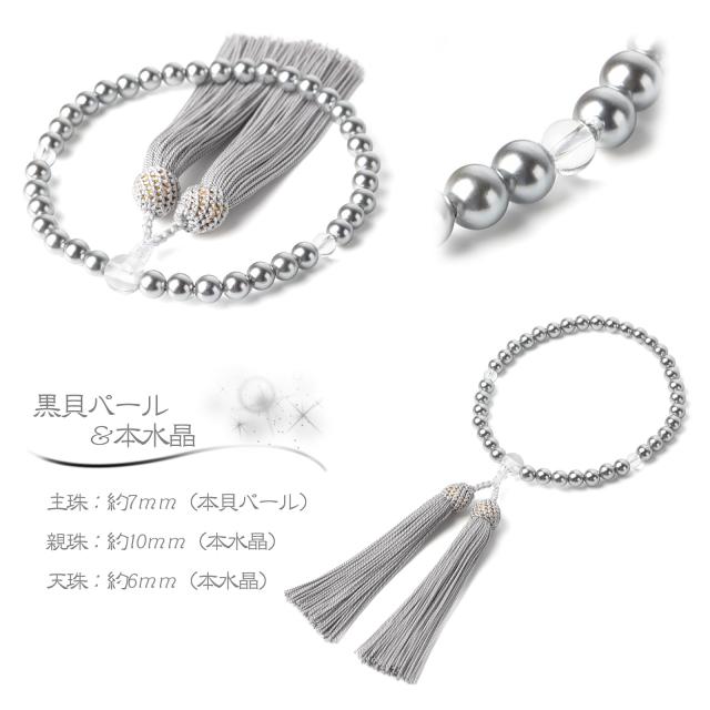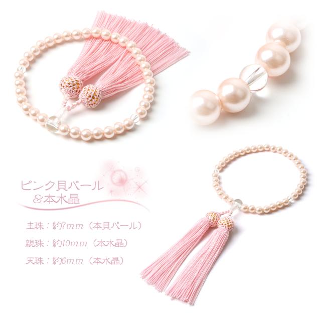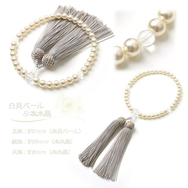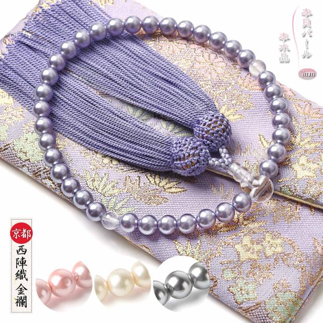 数珠 女性用 選べる 貝パール 本水晶 西陣織金襴数珠袋 付き 7mm パール 頭房 念珠