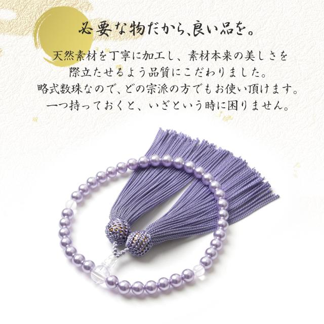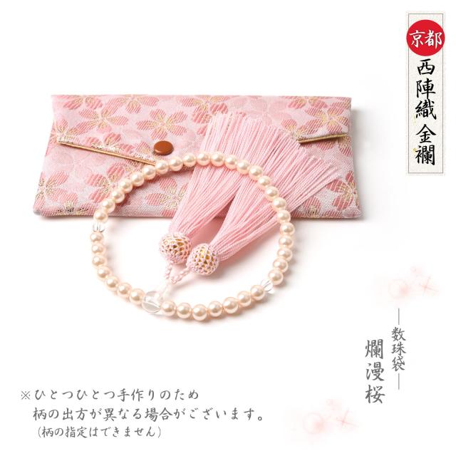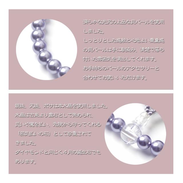 商品名 数珠 女性用 貝パール 本水晶 西陣織金襴数珠袋 付き 7mm パール 頭房 念珠