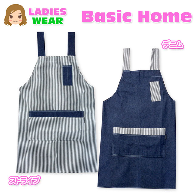 【送料無料】レディース エプロン H型 デニム ヒッコリー ボタン留め 婦人【メール便対応】